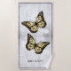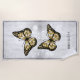 Disfrute de su día en la playa o junto a la piscina con una toalla de playa personalizada con una mariposa dorada. El diseño de las toallas incluye un par de mariposas vibrantes que descansan sobre una vina floral blanca sobre un fondo gris claro. Artículos de regalo adicionales disponibles con este diseño así como una variedad de colores.