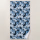 Toalla De Playa Flores azules y blancas en un fondo negro.