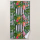 Toalla De Playa Flores Flamingo Hibiscus Black White Stripe