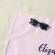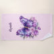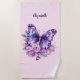 Un fondo de color rosa pálido decorado con una mariposa violeta, flores rosas y violetas. Personaliza y agrega tu nombre.
