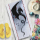 Dragón tribal negro con fondo azul, flores rojas y frontera roja
