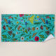 Toalla De Playa Flores y polillas silvestres en verde azulado