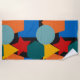 Esta toalla de playa tiene un diseño Bauhaus de formas aleatorias en azul, verde azulado, amarillo, rojo y naranja.