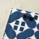 Patrón abstracto sin fisuras que presenta formas geométricas azules en un fondo blanco. Ideal para proyectos de diseño moderno, fondos de pantalla digitales o patrones textiles creativos. Evoca sofisticación y estética contemporánea.