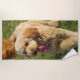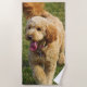 Esta tierna toalla de playa de perro dorado presenta una adorable foto de un cachorro de Golden Doodle. Añade tu propio mensaje de personalizado para hacer de este diseño tu propio! Fotografía creada por la galardonada fotógrafa Maria Jeffs.