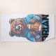Toalla de playa personalizada con un gran tema futbolístico. Diseño moderno con un oso atlético sosteniendo una pelota de fútbol. Personalizar con su nombre. Genial para los aficionados al fútbol. Use la plantilla para crear su propia toalla de playa personalizada.