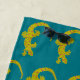 Mosaico, dibujo gráfico, de lagarto de Gecko, mostrado en colores tipo reptil, patrón de piel de oro, fuschia, cal, verde azulado, marrón y negro.