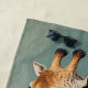 Una majestuosa jirafa se alza entre flores de lavanda frente a un tranquilo cielo azul pastel. Su largo cuello y cuerpo, adornados con patrones únicos, se extiende con gracia hacia el cielo de arriba. ¿Sabían que cada jirafa tiene un patrón único de puntos, muy parecido a las huellas dactilares humanas? Este diseño refleja la serena belleza de este gigante gentil, combinando su impresionante estatura con los delicados detalles de su entorno.
