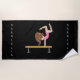 Haga un chapoteo en la piscina o la playa con esta toalla de playa personalizada de la gimnasia. Tiene un gimnasta adorable en el haz de balanza. Personalice añadiendo un nombre.
