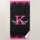 Toalla De Playa Girly Black Hot Pink Purpurinas Dris Monograma Nom