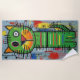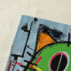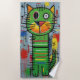A playful street art illustration of a stylized cat character with bold colors, rough sketch lines and splattered paint textures. The chaotic graffiti elements and bright shapes give the artwork a lively urban vibe inspired by city walls and underground street art.