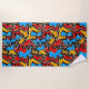 Toalla De Playa Grafiti negro amarillo rojo sobre azul