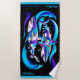 Celebra vibraciones de verano en cualquier época del año con nuestro moderno Personalizable Modern Great White Sharks que presenta un ilustracion abstracto moderno de colores intensos y grandes tiburones blancos en tonos grises, plateados, morados, nadando en brillantes olas de océano azules. El texto se puede actualizar con un nombre personalizado, un lema divertido o la firma para crear un regalo único o un accesorio personalizado de piscina o playa.