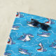 Gran tiburón blanco personalizado nadando en un patrón de olas oceánicas azules. ¡Los fanáticos de los tiburones disfrutarán de este diseño tan divertido en esta toalla de personalizable!