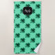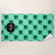 Personalice la toalla de playa única y brillante con su nombre y nombre inicial. Hermoso regalo turquesa del día de San Patricio: trébol con brillantes verdes inteligentes purpurinas. ¡Foto de chispas, no purpurina real!