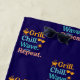 Fondo azul marino. Cita: Grill. Chill. Mar. Repetir. como un patrón.