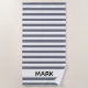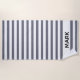 Una toalla de playa a rayas llamativas con motivos de rayas grises y blancas. Personalice con su nombre.