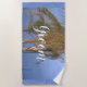 La playa de Groom o el tema de la boda de destino. Groom está escrito en escritura blanca. El fondo tiene un cielo azul con la bonito de tres palmeras con los frondos soplando en la brisa del océano. Fotografía original y diseño © TamiraZDesigns.