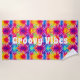 Toalla de playa divertida con un colorido fondo de tinte retro con personalizable hippie "groovy vibes" texto.