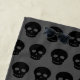 Este diseño genial tiene un patrón de cráneo negro en gris, con un nombre personalizado en blanco.