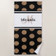 Los puntos de polka no parecen salirse de moda. Divertido pero elegante, y el blanco y negro inteligente con un toque de beige lo hace aún más. Personalice su toalla de playa añadiendo su nombre de pila y inicial o su apellido e inicial. También puedes usar tu propio texto. Sé creativo. Un regalo perfecto para usted o para la bella, tía, mamá o abuela.