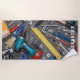 Handyman Garage Various Tools Beach Toalla con un nombre personalizado. Gran tamaño para la playa o la piscina.
