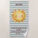 Make a splash with this delightful beach towel featuring a happy watercolor sun and nautical stripes! This design captures the essence of sunny days and happy tunes, with lyrics that celebrate joy and warmth. The vibrant yellow sun pops against the cool blue and white stripes, creating a visually appealing and cheerful aesthetic. Perfect for your child's summer essentials, this towel is as practical as it is pretty, offering a soft and absorbent surface for drying off after a swim. It's a charming addition to any beach bag or pool kit.