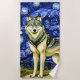 Toalla De Playa Hermoso lobo en la noche estrellada azul