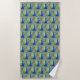 Diviértase al sol y en la playa con esta gran toalla de playa que muestra la imagen fotográfica de un hermoso pavo real azul y su plumaje de plumas coloridas y que se imprime en forma repetitiva.