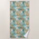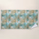 Toalla De Playa Hojas tropicales blancas de oro Aqua