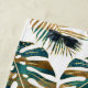 hojas tropicales con motivos verde azulados y dorados pinta toallas de playa. Muestra hojas tropicales estampadas con pinceladas en azul verde azulado, oro y confeti. Puede personalizar y agregar imágenes o gráficos.