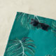 hojas de palma verde azuladas de estilo tropical hawaiano con escritura aloha sobre un vibrante fondo verde océano haciendo un elegante conjunto de toallas de baño de verano de moda a la moda. ++++++++++++ Personalízalo con las iniciales y la firma del nombre del monograma de script.