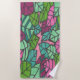 Toalla De Playa Hojas tropicales verdes y rosas