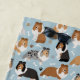 Los perros de la especie Shetland Shetland se sientan y se ponen de pie y se vuelcan con abrigos de arena, tricolorantes, merles y blancos con huesos de perro dispersos y patrones de huellas.