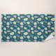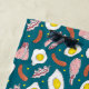 Toalla de playa de novedad colorida, con ilustraciones de huevos fritos hechos a mano, bacon y salchichas sobre un fondo azul oscuro. ¡El regalo perfecto para los cocineros de desayunos y los chefs!