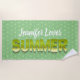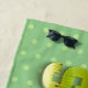 ¡Amamos el verano! Este divertido diseño presenta una tipografía realista de frutos kiwi sobre un fondo verde de puntos polka. Buen humor.