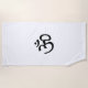 Icono de contorno Om Aum, símbolo de hinduismo, toalla de playa blanca negra