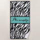 Toalla De Playa Impresión de cebra con monograma Verde azulado
