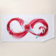 Símbolo infinito de flujo continuo de vino tinto vertiendo en vidrio de vidrio sobre fondo blanco.