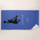 Toalla de playa con una silueta de un jugador de baloncesto sobre fondo azul con texto... Usted puede personalizar fácilmente con su elección de texto.