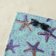 Piscina de arena y toalla de playa. Espectacular pez estrella tropical colorido de color rosa, azul, morado, gris, taupe, verde azulado y marrón. Acentuar la pieza es Coralize en morado. Océano, mar, náutica, decoración de baño inspirada en la casa de playa.