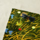El artista suizo Ernst Kreidolf era conocido por su naturaleza y sus ilustraciones de hadas, mostrando un nivel inusual de conocimiento sobre el mundo natural. Este ilustracion presenta dos variedades de mariposas nativas, azules o arebells, y fresas silvestres, así como helechos, dientes de león y rocas de setas