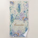 Esta toalla de playa de vida marina personalizada presenta un diseño submarino de arrecife de coral con acuarela de coral, algas marinas, conchas, pez estrella, cangrejo y caballito de mar.