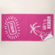 El diseño de esta toalla de playa, luminosa y audaz, incluye un gran texto blanco sobre el color de fondo que se desee. Una palmera arqueada y el texto "lif'e'e's a beach" se centran en un extremo, mientras que el nombre se resalta en el otro extremo con líneas de acento dibujadas a mano. Busque ID415 para ver otros productos con este diseño.