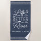 Actualice su instalación al aire libre en su residencia junto al río con esta linda toalla de playa personalizada que incluye la frase "la vida es mejor en el río" con letras blancas acentuadas con un ancla y un remo. Personalice el nombre de su familia y/o el año establecido a continuación. Ideal para familias, casas de verano o alquiler de vacaciones.