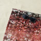 Imagem de pequenos quadrados píxeles que lembam uma parede ladrilhos ou cerâmica vermelho, porém, com muitas manchas e pequenos respingos que parecem manchas e borões de tinta spray.