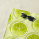 Un patrón de rodajas de cal fresca y jugosa en tonos vivos y vivos de verde limón, con una textura acuarela que le da ese aspecto recién cortado. Se colocan sobre un fondo amarillo claro / verde para una apariencia luminosa y veraniega.