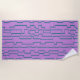 Esta toalla de playa tiene un diseño Art Déco que se asemeja a un circuito. Las líneas se están ejecutando verticalmente en verde azulado sobre un campo morado. ¿Quieres un color diferente? Mándame un mensaje.