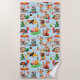 Una Toalla De Playa Divertida Para La Piscina O La Playa Patinada Con Animales Personalizados De Fondo Azul.