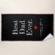 Minimal y moderno "Best Dad Ever" con tipografía sérica dibujada a mano con un corazón rojo en el centro y nombres personalizados en la parte inferior.